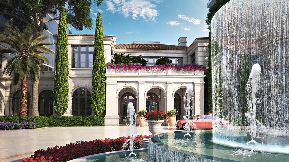 The Estates’ 5.6 acres of grounds and gardens will boast lush landscaped gardens, multiple infinity pools, a FlowRider® for surfers, a basketball court, a bocce court, a dog park, soccer field, a beachfront restaurant and 502 feet of Atlantic oceanfront with Five Star beach and pool services. 24-hour valet, 24-hour security services, a full service resident concierge and a house Rolls-Royce will also be available.