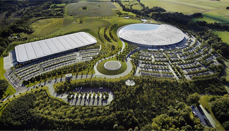 I had the enviable chance a few weeks ago to tour the McLaren factory in Woking, Surrey, England. Lucky for me, it was with none other than Amanda McLaren, daughter of namesake founder and racing legend Bruce McLaren, who gave me a personal tour of the expansive grounds. Upon arrival at the supercar headquarters, you are immediately taken back by the stark natural beauty that Foster + Partners put into designing such a large building. It is as if it all flows together, nature and technology, in an ecosystem that compliments each other. Indeed, everything from the water usage, to the heating and cooling of the buildings is in tandem with the environment, never once does all the supercar testings and painting affect how the natural course of things go outside.