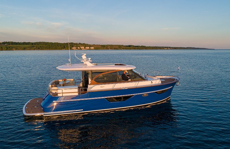 Burger Boat Company, one of the oldest and most respected custom yacht builders in America, is pleased to announce the sale and delivery of its newest Burger 48 Cruiser, Hull 512. This Burger 48 Cruiser is a specially built 48’ (14.63 m) aluminum cruiser developed in conjunction with Vripack Naval Architects and features an interior from De Basto Designs. The yacht was christened Thursday, Aug.15 by her owner at Burger’s shipyard in Manitowoc, Wis. The owner took immediate delivery and, after a trip to Door County, Wisconsin, will cross Lake Michigan to the yacht’s new home. “We are proud to deliver this extraordinary yacht. Now her new owners can enjoy a lifetime of adventures with family and friends,” says Jim Ruffolo, president, Burger Boat Company. “A Burger 48 Cruiser is the perfect opportunity to start the yachting journey.”