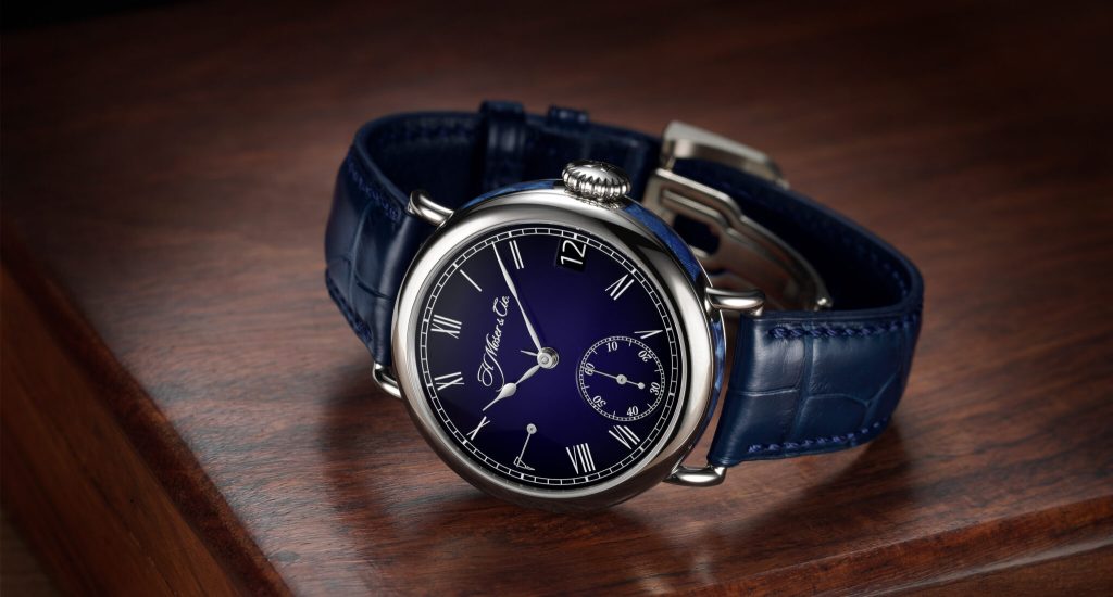 In creating the Heritage line, H. Moser & Cie. took inspiration from the watches that evoke the brand’s history from 1828 to the present day, and specifically those dating from the early 20th century. The distinctive classicism of the Heritage Perpetual Calendar Midnight Blue Enamel is evident not only in its rounded case, but also in the notched crown and Grand Feu enamel dial, brought to life by the Roman numerals and the swallow-tail hands. Every aspect of this exceptional piece has been created to exude elegance and refinement, with details such as the fine lugs and a railroad minute track enhancing its traditional character. And, because tradition at H. Moser & Cie. never means dull or fusty, behind the classic façade of this watch lies an emphatically irreverent aesthetic, as revealed by the Heritage Perpetual Calendar Midnight Blue Enamel’s deep blue dial, which brings the entire design to life.