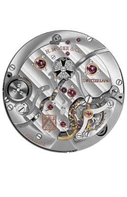 Visible behind the sapphire case-back, the HMC 800 movement is the driving force behind the Heritage Perpetual Calendar Midnight Blue Enamel. A masterpiece of simplicity and ingenuity, this hand-wound manufacture calibre, which uses the indices to indicate the months, can be adjusted forwards or backwards at any time of day. Thanks to the “Flash Calendar” system, the date changes instantaneously at midnight, taking into account months with 30 or 31 days and the leap years. Decorated with the famous Moser double stripes, the calibre HMC 800 features a double barrel for a guaranteed power reserve of 7 days.